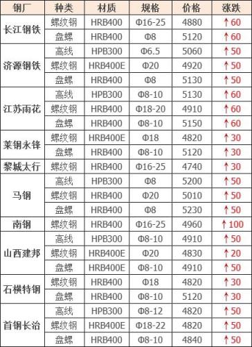上調(diào)10家,占比100%,調(diào)價幅度20-100元/噸;