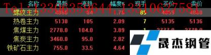 今日螺紋主力期貨漲84,收?qǐng)?bào)4860,漲幅1.76%;熱卷主力漲105,收?qǐng)?bào)5138,漲幅2.09%;焦煤主力漲104,收?qǐng)?bào)2778,漲幅3.89%;焦炭主力漲98,收?qǐng)?bào)3460,漲幅2.82%;鐵礦石主力漲33.5,收?qǐng)?bào)755,漲幅4.64%。